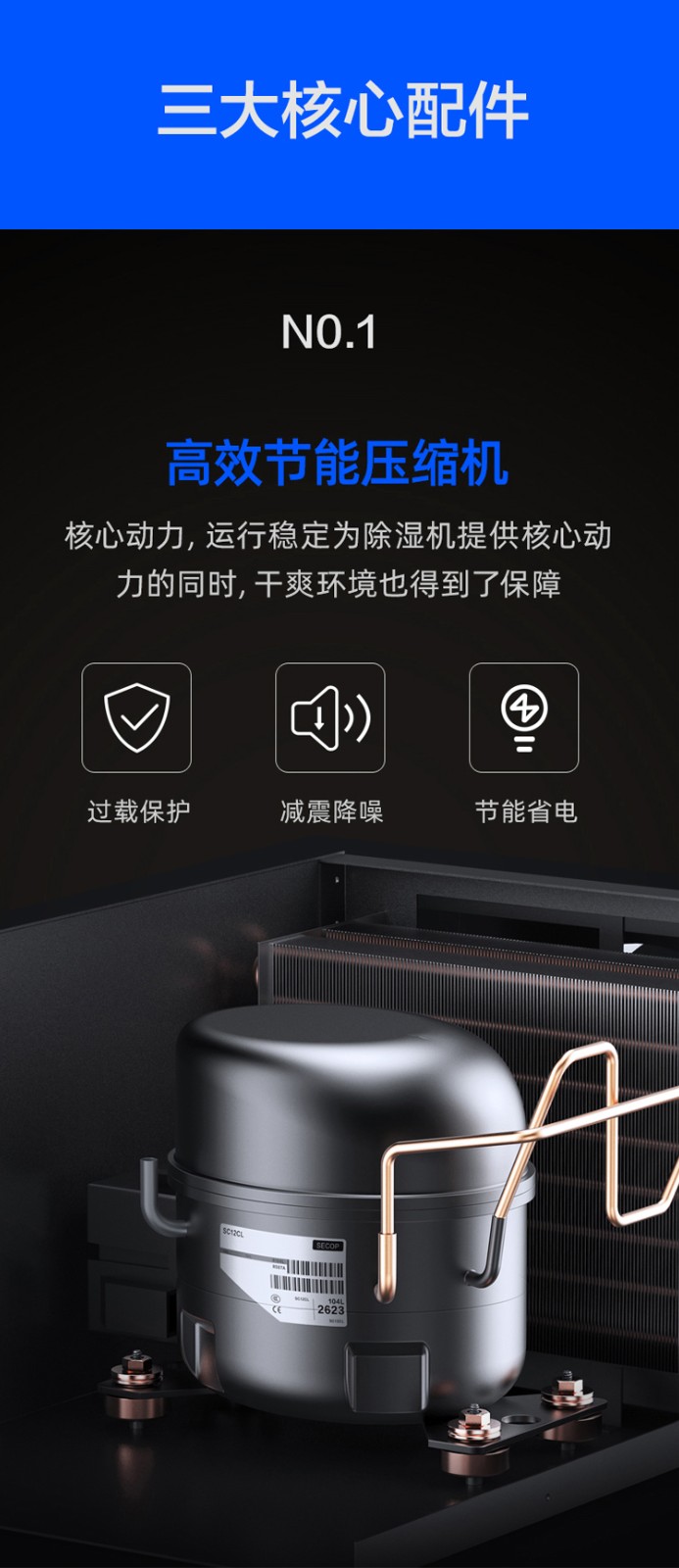 2、采用进口日立/松下/大金等品牌高效能压缩机,节能环保,抗寒耐高温,静音运行