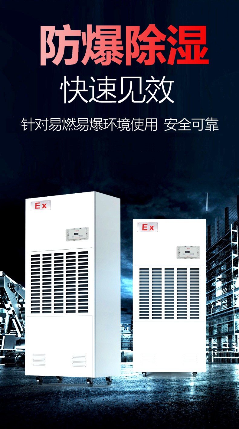 国防工程,人防工程,易燃仓库,部队弹药库,易爆炸性气体仓库和车间用除湿机都需要做防爆处理。这样对人