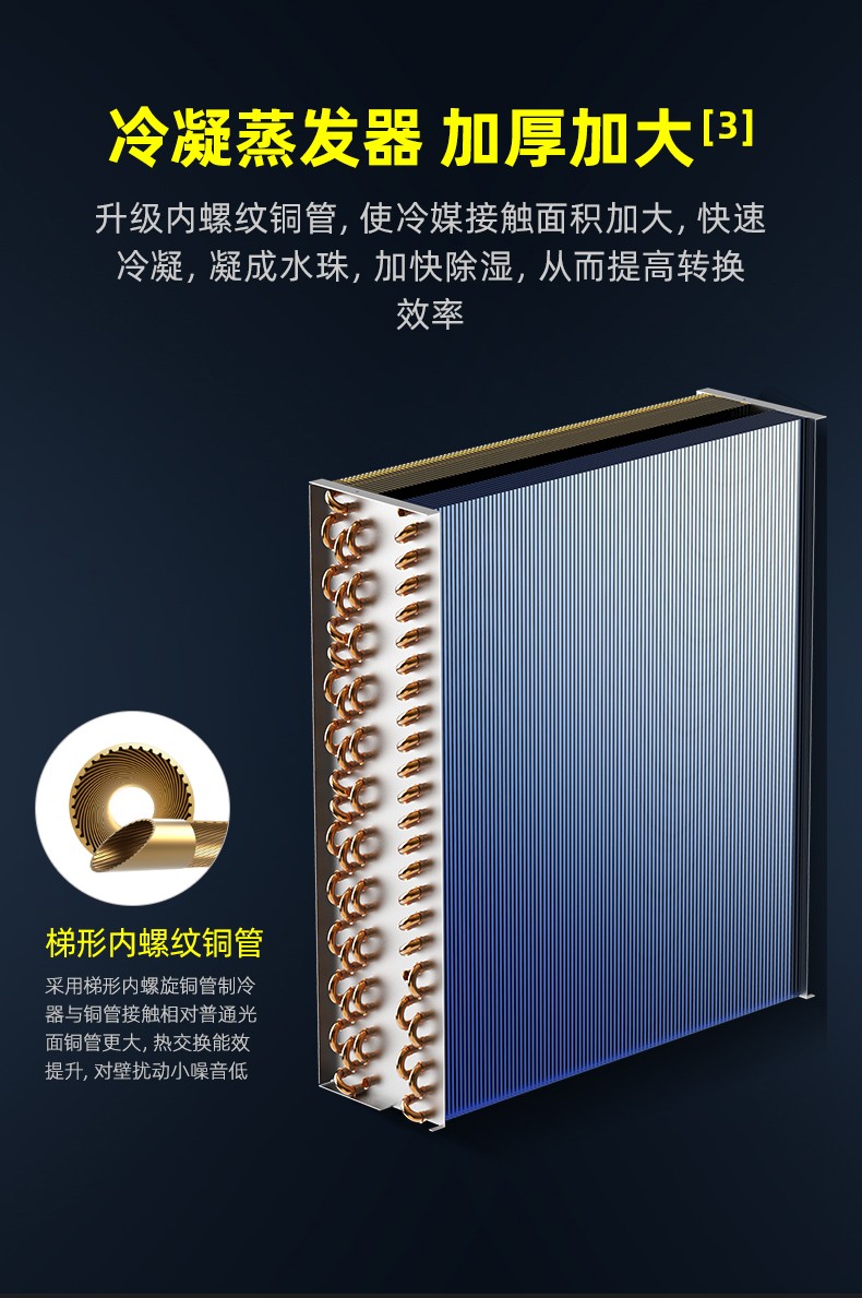 6、两器采用亲水铝箔亲水翅片,加厚内螺纹铜管,换热效率高